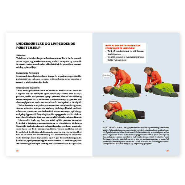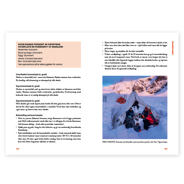 Her lærer du både livreddende førstehjelp og hvordan gode tiltak ved mindre alvorlige skader kan gjøre at turen fortsetter som planlagt. For dem som skal på ekspedisjon til høye fjell eller eksotiske himmelstrøk, har boka egne kapitler om høyde- og reisemedisin.